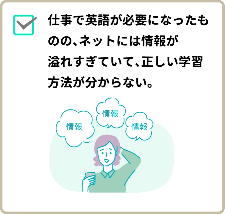 英語に関するお悩みをヒアリングし、最適な学習方法をご提案します。