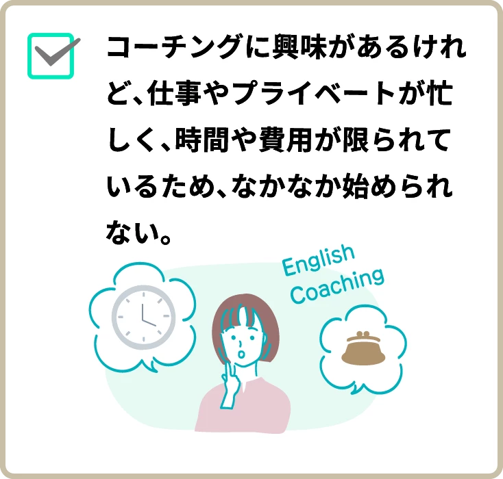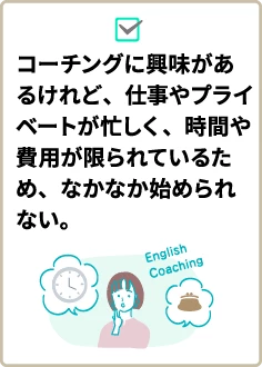 コーチングは1回15分なので、忙しい方でも平日の仕事前、昼休み、業務の隙間時間、仕事後や休日などにスケジュール調整が容易です。