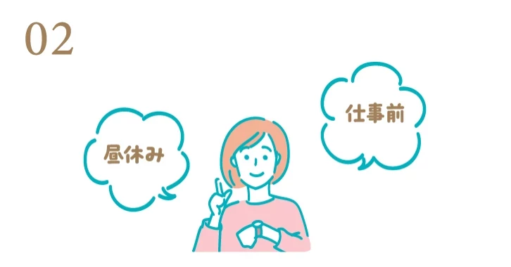 平日の仕事前、お昼休み、業務の隙間時間、仕事後や休日などに柔軟に対応いたします。